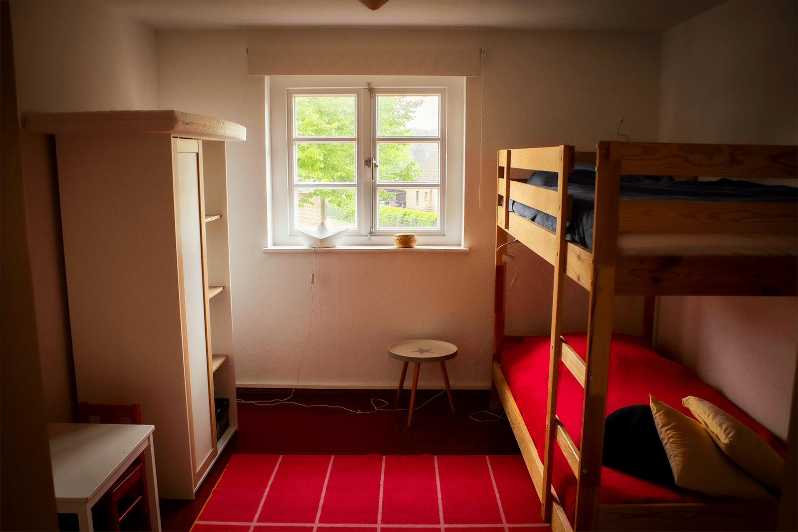 Im Obergeschoss sind, neben einem zweiten Badezimmer mit Dusche/WC, auch zwei weitere Schlafräume vorhanden, wovon der eine mit einem Doppelbett und der andere mit einem Etagenbett ausgestattet ist. Für unsere kleinen Gäste können wir ein Kinderbett und einen Hochstuhl zur Verfügung stellen.