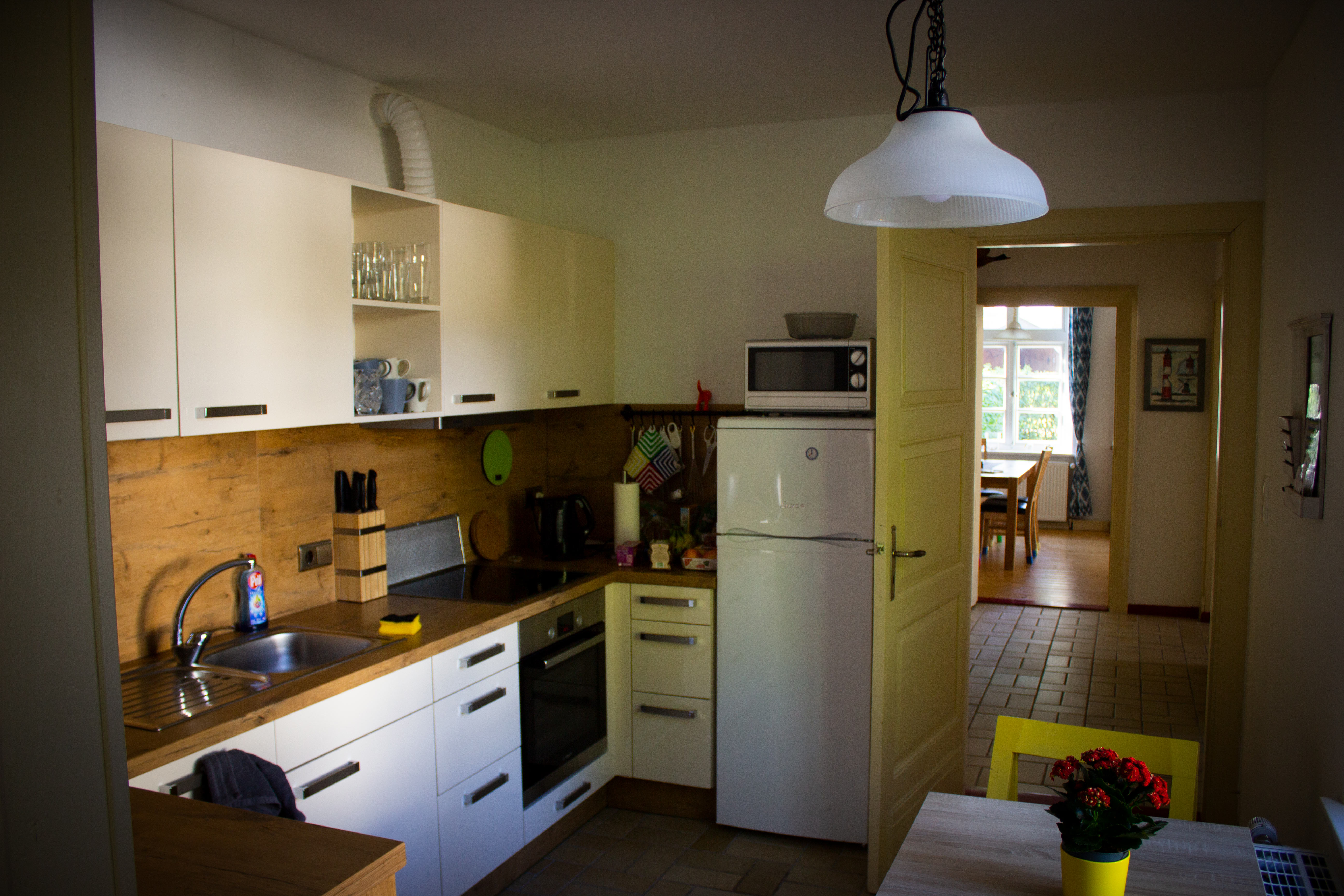 Es erwartet Sie eine nach Westen ausgerichtete Terrasse mit Gartenmöbeln, Sonnenliegen und Grill. Der Garten ist idyllisch mit altem Baumbestand und schönen naturbelassenen Ecken. Unsere kleinen Gäste können hier wunderbar herumtollen, sich verstecken oder im Sandkasten buddeln.